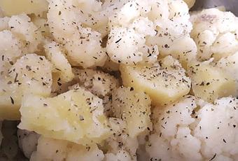- Escurrimos las coliflor y las patatas. Ponemos en un bol y regamos con la salsa.