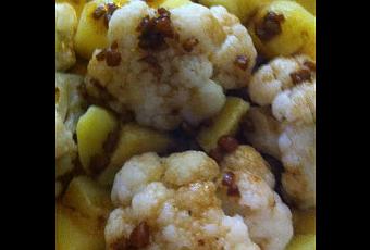 - Sirve la coliflor y las patatas con la salsa de té negro y miel.