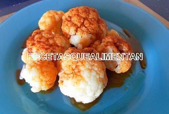 INGREDIENTESUna coliflor, 4 dientes de ajo, una cucharadita pimentón dulce, 150 ml. aceite de oliva, agua, sal.PREPARACIÓN