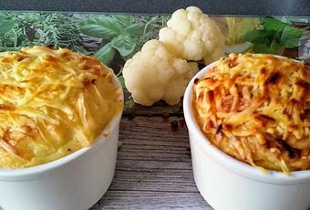 Cuando la coliflor este tierna escurrimos el agua y la echamos con la bechamel, mezclamos todo bien y colocamos en un molde para horno. Yo la he puesto en moldes individuales pero puedes colocarla tambiénen un molde grande.