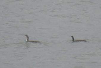 Por el cuello tan marcado de gris se deduce que ambos ejemplares son juveniles, como la mayor parte de los que se ven aquí. Los colimbos chicos son muy escasos en migración en Asturias entre noviembre y diciembre, y unos pocos se quedan en nuestras aguas a invernar, en especial en la bahía de Gijón. La ensenada de Luanco es uno de los mejores enclaves de la costa asturiana para observar a esta especie, tanto en paso otoñal como en invernada.