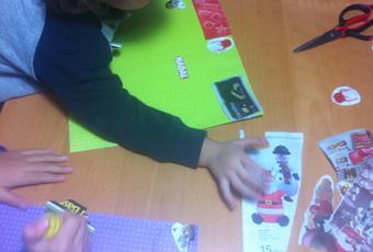 Además favorecemos la psicomotricidad fina de manos y dedos, al recortar y pegar.