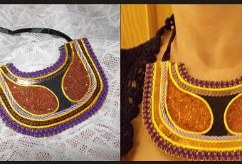 PASO 1: Realizaremos el molde del diseño de nuestro collar en una hoja. Luego lo dibujaremos sobre el fieltro 2 veces.Una vez cortados tendremos las bases para realizar el collar. PASO 2: Ahora con las cintas y cordones que tengamos, las colocamos usando el pegamento que es más fuerte y rápido. esto nos permite asegurar bien cada pieza que ponemos pero también seguir haciendo cosas sin necesidad de esperar demasiado.