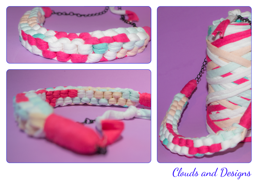 Me compré un ¿ovillo?, el mazacote ese de trapillo que venden y me hice un collar, que están súper de moda y ¡yo no quería ser menos!