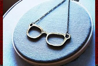 Collar realizado en metal con colgante de estilo retro gafas doradas.