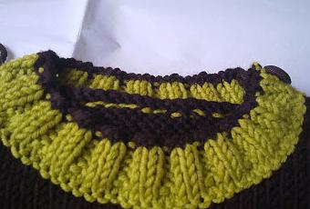 con un hilo de color diferente,hacemos dos vueltas en punto liso o jersey y lo soltamos de las agujas,estas dos vueltas que hacemos es para que no se nos deshaga el cuello al coserlo