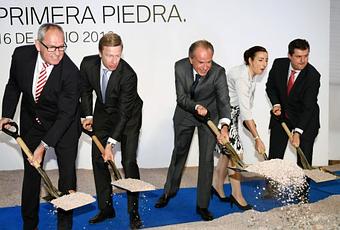 Villa de Reyes, S.L.P.- Con una inversión de 1,000 millones de dólares que generará 1,500 empleos directos, inició la construcción de la planta de BMW Group en San Luis Potosí, para lo cual el Gobernador del Estado Juan Manuel Carreras López, colocó la primera piedra de lo que será la armadora de autos y que está previsto inicie operaciones en el año 2019, con la producción de 150 mil unidades anuales de la Serie 3 BMW para el mercado mundial.