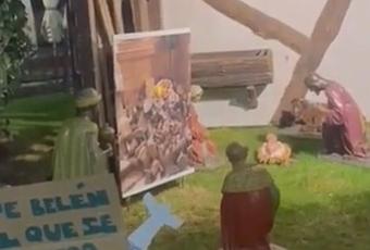 El Belén de la plaza de la Hispanidad de Cuenca ha aparecido este sábado con figuras de proyectiles y carteles denunciando los ataques de Israel a Palestina.