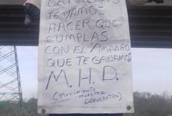 “Uno de los mensajes íntegros es el siguiente: Governador Carreras, te vamos hacer que cumplas con el amparo que ganamos . M.H.D (Movimiento Huasteco Democrático”