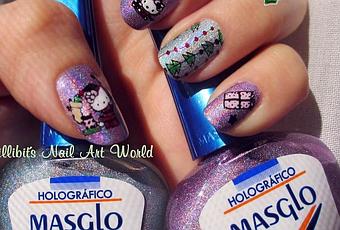 ¿Habéis colocado ya los adornos navideños? Imagino que sí... Hello Kitty también los ha colocado ya :P y sobre unos preciosos holográficos de Masglo ;-)