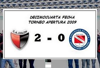 Apertura 2009: Colón 2 vs. Argentinos Juniors 0 (Esteban Oscar Fuertes -2-).