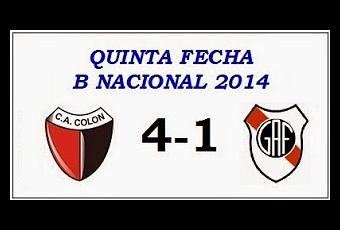 6) Nacional B 2014: Colón 4 vs. Guaraní A. Franco 1 (Facundo Julián Callejo, Facundo Nicolás Curuchet, Cristian David Pavón y Gustavo Alejandro Villarruel // Cristian Andrés Omar Barinaga).