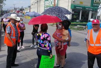 Soledad de Graciano Sánchez.- Este día se manifestaron vecinos de las colonias San Antonio, Privadas de San Pedro y San Francisco, pidiendo a las autoridades correspondientes solucionen el problema que tienen de aguas negras debido al colapso y taponamiento de drenaje que provoca encharcamientos de aguas negras.