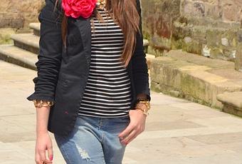 El look de hoy es un look primaveral muy sencillo compuesto por prendas básicas que prácticamente todas tenemos en el armario pero que con la ayuda de los complementos se convierte en un look que no pasa desapercibido. Por un lado un vaquero, en esta ocasión opté por un vaquero baggy tardé en hacerme con uno pero cada día me gusta más y me resulta más cómodo, una camiseta de rayas blancas y negras estilo navy, quién no tiene una de este estilo a estas alturas y una blazer negra, esta prenda estoy convencida que no falta en ningún armario. Para los complementos y lo que realmente hace destacar el look me decanté por el color fucsia, un color muy alegre y primaveral que además me gusta muchísimo como queda con el negro, así que no podían faltar mis nuevos zapatos fucsia de Zara, el bolso de Moschino de este mismo color y una maxi-flor fucsia en la solapa de la chaqueta que se lleva todas las miradas, me encantan los broches flor, los tengo en todos los colores, creo que dan un toque personal y muy chic a los looks. Qué os parece el resultado? CAMISETA: ZARAVAQUEROS: BERSHKABLAZER: ZARAZAPATOS: ZARABOLSO: MOSCHINO by VOGACOLLAR: LEFTIESFLOR: H&MGAFAS: DONNA KARAN FOTOGRAFÍA: ROCIO ZAS