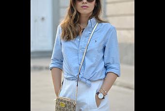 El look que os enseño hoy, está compuesto por ese tipo de básicos de los que os hablo: camisa masculina, bermudas clásicas y alpargatas. Además, hoy os enseño dos formas distintas de llevar la clásica camisa oxford que seguramente todas tengais en vuestros armarios. La primera es de la manera habitual, pero dándole un punto distinto, anudándola a la cintura y dándole la vuelta a las mangas. La otra opción es 100% sexy, y me encanta para los estilismos playeros por esa forma 'off-shoulders'. Simplemente consiste en abotonar los dos últimos botones y echar el cuello de la camisa hacia la espalda, de manera que nos quede un top como los que tanto se llevan hoy en día.