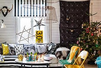 Su decoración de una cuidada mezcla de estilo escandinavo con toques industriales y vintage se traslada a los adornos navideños; con abetos en macetas de hierro galvanizado, gigantes letras rojas, renos pintados con motivos coloridos o velas dentro de antiguas latas vintage.