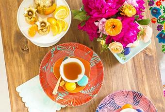 - Ahora buscamos una vajilla de te o café en colores vivos ¡Si son con detalles dorados mejor!