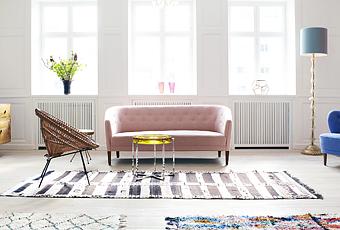 Una paleta de colores recorre todos los espacios de esta vivienda de típica arquitectura nórdica. Amplios ventanales que dejan pasar la luz, suelos y paredes blancas, y la calidez que aporta el mobiliario en madera.