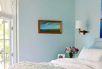 - El azul suave en paredes ( o también el verde o salmón), es una apuesta segura. Siempre queda bien, pero sobre todo si la habitación tiene luz. Ten en cuenta a más luz en una habitación más matiza el color. Un azul suave si hay mucha luz se disimulará y lo verás más claro (que en el bote de pintura). Sin embargo si la habitación tiene poca luz natural el color se nota más.
