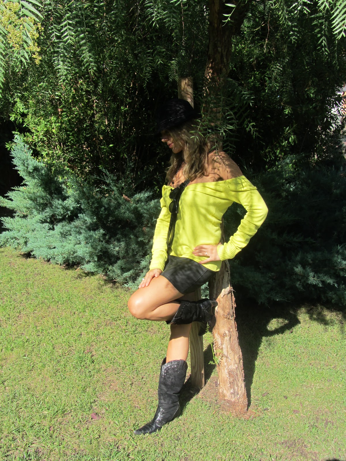 Buenos días amores!! Llegan las nuevas temporadas y con ellas el color para resaltar el moreno que nos queda del verano. Se llevan los corales , los flúor, verdes.... Me identifico mucho con este look que he escogido hoy, me hace sentir cómoda y en eso consiste la moda no? en sentirse cómoda. Son prendas muy versátiles, la falda de Zara que la puedes combinar con un taconazo , una camisa y un clutch y ser la más sofisticada de las calles, el jersey amarillo flúor de Asos quedaría genial con una pantalón rasgado, botines negro con cordones y un blazer tipo masculino ¡¡ un look muy trendy!., Super importante los complementos, son los que mejor complementan un look, las botas son una mezcla de ante y cuero con tachas y las tengo de hace mucho tiempo son de Bershka , bolso de arandelas plateadas de Essentiel , gafas Ray- Ban y sombrero customizado por mi con unas pequeñas tachas, del rastro de Madrid.