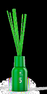 · Colorterapia Nº 5 Verde. Equilibrio. Notas frescas y balsámicas del té verde potenciadas sobre un fondo ambarado.