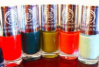 Los tonos son muy divertidos, los que os muestro aquí son: Red my mind, The Body Shop green, Hemp over heels, Rosy Cheeks y Mint Cream.
