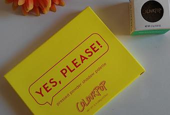 A priori la foto no parece muy atractiva, lo se, el día que la hice estaba nublado y no se ve la belleza de estos productos pero en las siguientes fotos veréis como cambia la cosa. Je je!La paleta YES, PLEASE, viene protegida con esta cajita amarilla con letras naranjas. Es un poco chillona pero va acorde con los tonos que encontraremos en la paleta. Al abrirla nos encontramos esto.