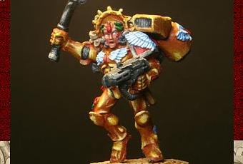 Al igual que las miniaturas de Mephiston y de Tycho, está también la vimos por primera vez en España en el número 16 de la revista White Dwarf de Mayo-Junio de 1996 y también fue realizada por Jes Goodwin. Personalmente me gustan más cualquiera de las otras miniaturas que esta.Esta figura la compré pintada hace bastante tiempo con unos colores imitando el NMM. Lo único que le añadi recientemente fue la peana de resina de casa Scibor.