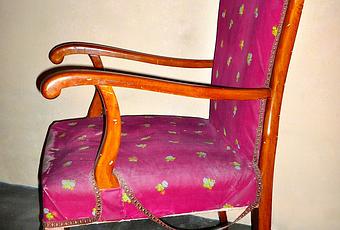 Después de probar con una silla, nos atrevimos un poco más y cambiamos una par de sillones que había a juego en la habitación. Los sillones eran muy antiguos, la pintura estaba estropeada, el tapizado demasiado usado, la pasamaneria colgaba pero lo más increíble y nuestra sorpresa al quitar el tapizado, fue que el acolchado estaba hecho de paja.