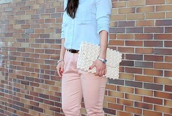En el look de hoy he querido combinar los dos colores que más se están viendo estos días : el rosa pálido o pastel con el azul bebé. El pantalón ya me lo conocéis porque lleva conmigo desde hace un par de años cuando comencé el blog y la camisa es nueva , de un tejido muy ligero de algodón y de las que se arrugan con sólo mirarlas. Como complementos , este precioso clutch hecho a mano de la tienda de Emma, Mis bolinas y los peep toes que tantísimas veces me habéis visto ya . Como veis me gusta combinar prendas que ya tengo con alguna nueva, raramente llevo todo nuevo. Espero que os haya gustado mi equipo de hoy. Bss y buen día:)