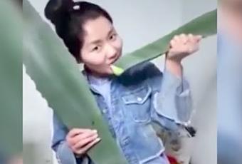En el video se observa cómo Zhang da varias mordidas a la planta, mientras asegura que "está muy buena", pero unos segundos después reconoce que en realidad "es muy amarga".