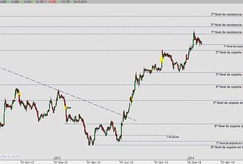 En el corto plazo soporte horizontal ubicado en los 18.8x euros, que de perderse dibujaría el camino hacia los 17.75 euros. No obstante, en caso de hacer fuerte el apoyo en los 18.8x euros, probablemente la cotización se dirija hacia la zona de los 21.00 euros para intentar marcar nuevos máximos crecientes.