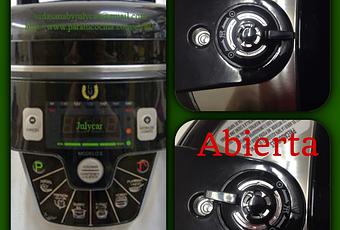 Podemos despresurizar la máquina manualmente, abriendo la válvula (cuidado nos podemos quemar por la salida del vapor) y sino tenemos prisa la dejamos despresurizar sola y no manchamos nada. Hasta que la olla no expulse todo el vapor no nos dejara girar la tapadera para abrirla, esto es por seguridad.
