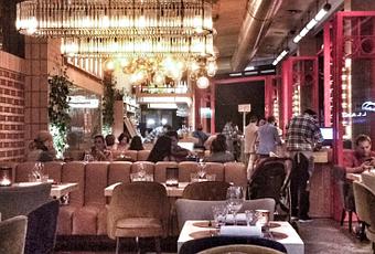 El restaurante hace esquina y la pared que da hacia afuera son cristaleras que ahora en verano están abiertas, con lo cual es como una terraza si estás en una mesa de ese lado. Por su parte, la decoración es cautivadora, con ladrillo visto, azulejos rojos y mucha iluminación, una combinación que quizás a alguno le puede resultar un poco exagerada, pero a mí ese toque de exceso me parece que le da el encanto, me resulta un poco barroco.