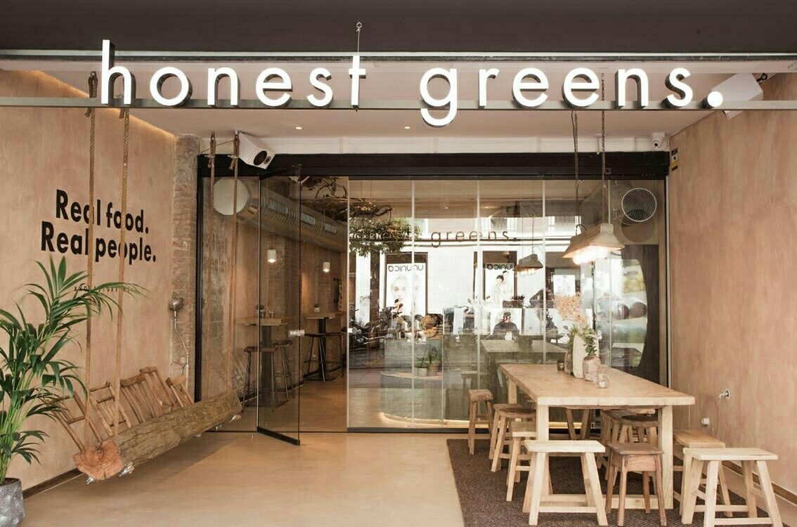 Honest Greens restaurante. Abierto de lunes a domingo. Locales ubicados en Rambla Catalunya, 3, Pla de Palau, 11 y Carrer Tuset, 4.