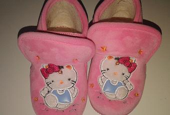 Tres años más tardes....¿adivinan quién tiene unas zapatillas de andar por casa de Hello Kitty?