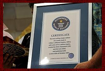 El X-MEN # 1(1991) logró vender 8.1 millones de revistas, este número fue escrito por Chris Claremont y dibujado por Jim Lee. El premio fue entregado en el marco de la Comic Con.
