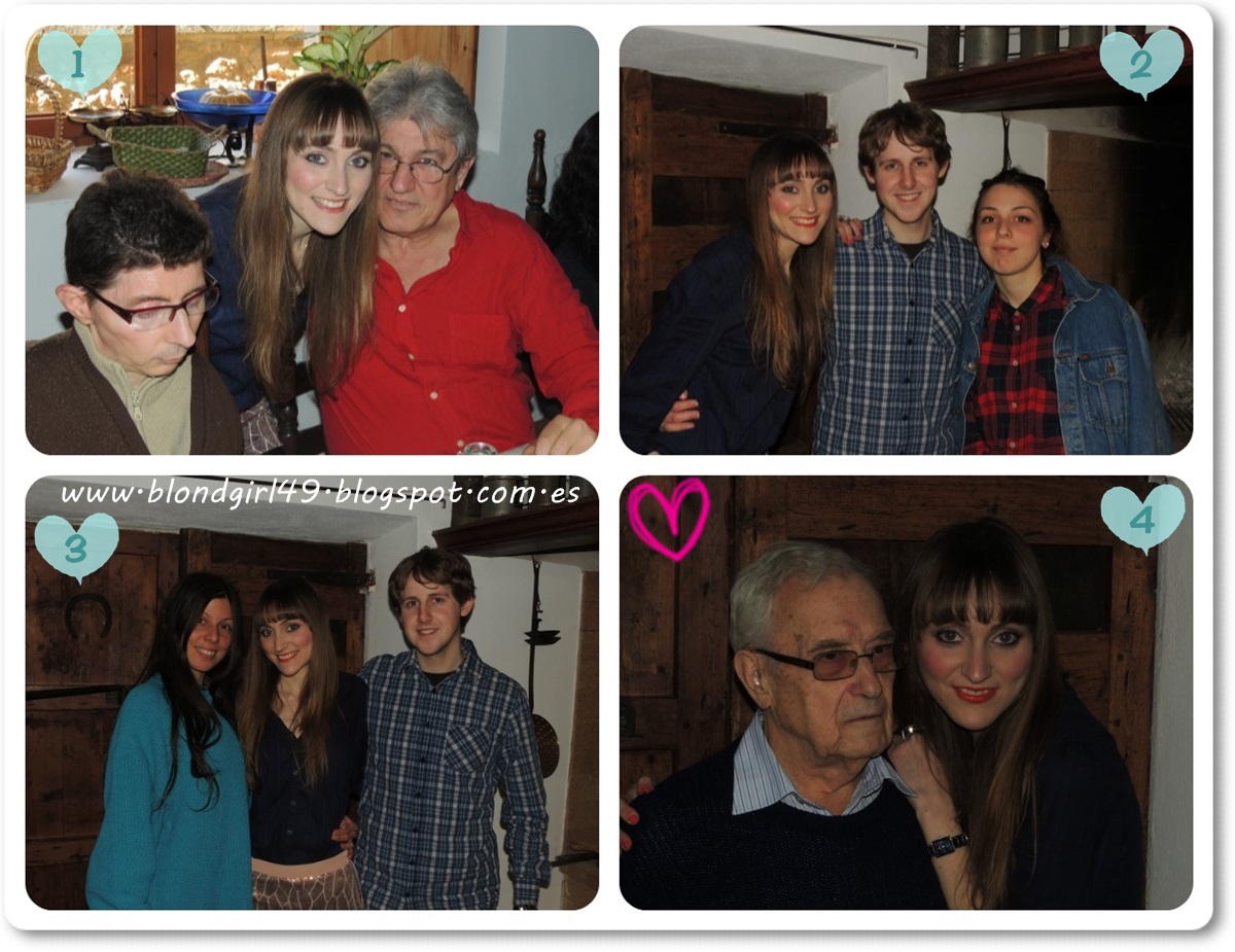 Sé que en la foto se ve bastante oscuro el look de maquillaje, pero os comento que me gustaría volver a hacer este look para enseñarlo en el blog porque me gustó muchísimo el resultado y tuve a toda la familia diciéndome que iba muy guapa^^. Llevo un dúo de sombras que sacaron hace poco de ed. limitada de Manhattan que me tiene enamorada, pronto os lo enseñaré en las compritas de Abril, es de tono rosado y borgoña aunque en la foto parece casi negro. Luego llevo el colorete de dolce vita! de Deliplus (en otras fotos me lo veréis mucho mejor) y el labial 02 de dolce vita! que me tiene enamorada, es un naranja coral preciosísimo!!! El esmalte de uñas también es el que se corresponde con el labial :P. También os los enseñaré en las compras dentro de poco.Un poco de familia: