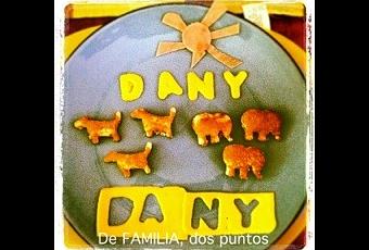 Las letras son de queso y los animales de pan cakes. El sol es de jamón de pavo.