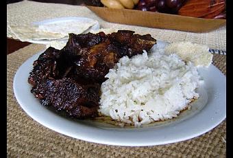 Primero unas palabras sobre esta preparación, que es considerada por los guyaneses como uno de sus platos nacionales. Como indiqué en el artículo en referencia, su origen es amerindio, concretamente de las zonas aledañas a las bocas del Orinoco entre el río Pomerún (o Pomerón) y Morajuana hasta la línea del Tratado de París. Se prepara con el cassareep, que es un melado que se hace hirviendo por muchas horas el yare de la yuca amarga hasta que toma un aspecto de melaza muy oscura. En una página web describían el proceso, pero no tiene sentido, porque en ningún hogar guyanés se hace, sino que se compra uno de buena calidad procedente del Territorio Esequibo.