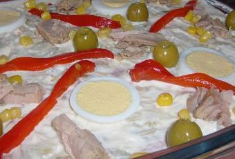 La preparación de la ensaladilla rusa es muy sencilla: se trocean las hortalizas y se cocinan al vapor, se incorporan el resto de ingredientes como el atún y los huevos duros picados, y se mezcla todo con la salsa de mayonesa, que puede ser casera o de bote. Para decorar el plato se pueden emplear tiras de pimiento rojo asado o aceitunas rellenas.