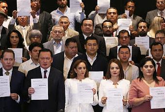 El bloque parlamentario del Partido Revolucionario Institucional (PRI) en el Senado de la República se mantuvo con nueve de sus 13 miembros después de la dimisión de Miguel Ángel Osorio Chong, Claudia Ruiz Massieu Salinas, Eruviel Ávila Villegas y Nuvia Mayorga Delgado a su afiliación partidista.