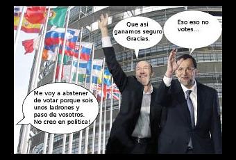 Y tú dirás que no vas a votar, que pasas, que estás cansado, que son unos ladrones, que las Europeas te importan un rábano, que no vas a perder tu tiempo escuchando sus mentiras, es más, ni pondrás la televisión, ni escucharás las cuñas de radio, y cuando veas los carteles en la calle, mirarás para otro lado hastiado de todo y deseando que te dejen en paz, mientras rumias lo mal que está todo y te quejas de tu sueldo, de esta sociedad, de la vida misma, y protestas y reniegas de ellos y de los otros y de todos, y te preguntas por qué tienes que sufrir tú por culpa de estos cabrones, por qué tus hijos se van a tener que ir al extranjero si tú consigues, rompiéndote la espalda de sol a sol, pagarles la carrera. O quizá sólo estés pensando en qué llevar a la mesa para que puedan comer. Y por supuesto, con todo lo que ya tienes encima, ni modo de ir a votar, pasas.