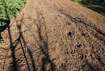 Una vez terminada la plantación de todas las variedades anteriormente mencionadas, he colocado el plástico sobre los arcos de hierro. Esto hará que actué como pequeño invernadero para crear el micro clima para aumentar la temperatura en su interior.