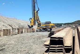 Según cuenta Enrique Abad, Responsable Técnico y de Edificación de Jaureguizar, “los trabajos se han iniciado en la parcela RZ-13 con el tablestacado, que consiste en el hincado en el terreno perimetral de unas piezas de acero de entre 12 y 16 metros de longitud, con el fin de crear una pantalla de contención que rodee toda la parcela. De este modo, se permitirá la ejecución de los trabajos de movimiento de tierras y cimentaciones en seco.”