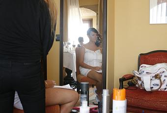 En la Suite Antares yo comenzaba a ser una princesa. Mi amiga Patricia desplegaba brochas, sombras, rimmel, secadores, planchas de pelo, horquillas, lacas, crema…. Un auténtico maletín de Mary Poppins lleno de esas cosas necesarias para brillar aún más ese día. Patri estaba nerviosa, había soñado varias veces que se rompía la muñeca y no me podía peinar pero allí estábamos! Yo contribuía a aumentar sus nervios.