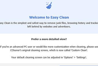 La nueva función de CCleaner orientada para los no técnicos, hace que cada vez que inicies la aplicación aparezca el modo "Easy Clean o Limpieza fácil", claro, esto es útil para aquellos usuarios que, si bien, no necesitan realizar una limpieza personalizada o avanzada de su equipo, y únicamente utilizar la configuración predeterminada por la herramienta.