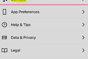 3. Esto lo llevará al menú de Configuración en su dispositivo. Junto al ícono que parece una nota musical y un micrófono, verá una pestaña etiquetada "Servicios."