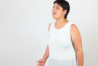 Cuando encuentras tu voz, con unos agudos y unos graves definidos y enteros, puedes pasar a cantar canciones o arias. Podemos pasar ya de los ejercicios con vocalización (o volverán de vez en cuando para seguir el trabajo de reconstrucción), y trabajamos directamente con canciones: es como pasar del 2D al 3D. Es más divertido, más rico y más retador.
