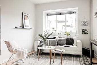 Para combinar estos pisos tan pequeños lo mejor es recurrir a una decoración muy neutra: tonos grises, tierras o blancos, así como fibras naturales y maderas.